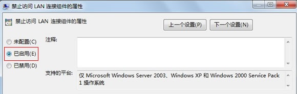 1、 依次打開開始菜單→運行,接著輸入gpedit.msc,然后點擊確定進入組策略編輯窗口,此時找到用戶配置--管理模板--網絡--網絡連接,并且在右側鼠標雙擊禁止訪問LAN連接組件的屬性。
