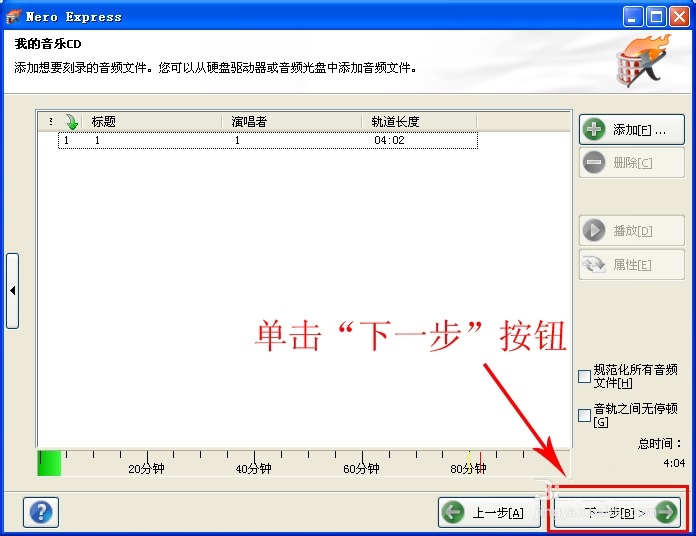 3、 添加完音樂文件后,那么就點擊下一步按鈕。