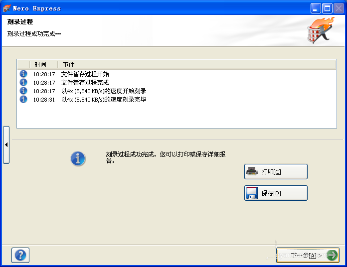 5、 刻錄成功后,大家點擊確定,接著再點擊下一步。假如你需要刻錄多張光盤那么可以選擇“新建項目”,不需要的話則右上角關閉軟件。