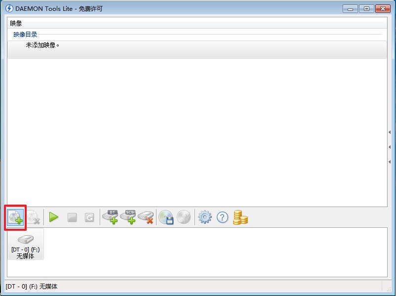 1、 打開安裝好的Daemon Tools軟件后,點擊左下角的添加按鈕,并且選擇win7系統鏡像進行一鍵系統安裝iso鏡像文件。