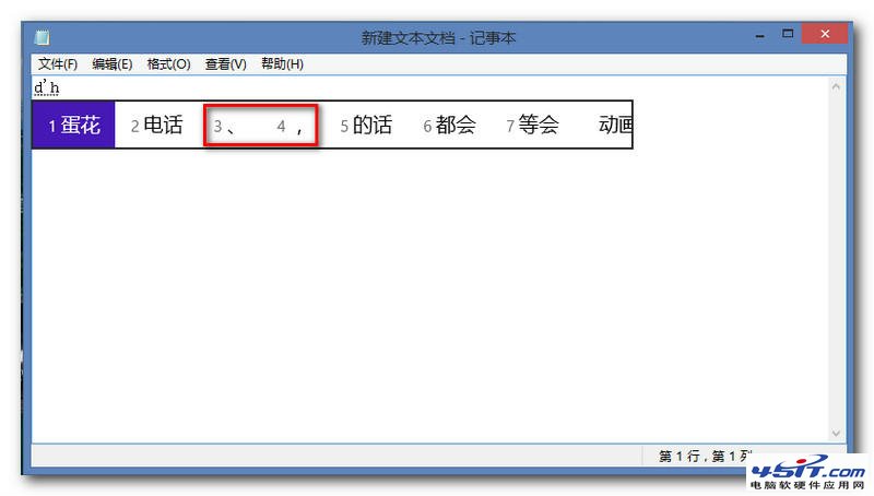比如你要打出頓號“、”逗號“,”你只要輸入名稱首字拼音【d h】即可出現,其它符號以此法類推:(如下圖)