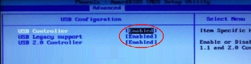 3、進入“USB Configuration”選項后,將所有項都改成“Enabled”選項,按上下方向鍵選中后點擊回車把“Disabled”選項改為“Enabled”選項即可。