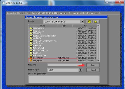 5、點擊彈窗上面的下拉箭頭,選擇你在白云的系統大全里面下載的那個GHO系統文件所在盤。由于我是存到E盤的,所以選擇的是E盤。