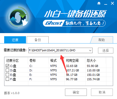 在電腦上直接下載小白一鍵備份還原軟件,選定需要還原的Win10系統備份文件,按圖示確定重啟安裝即可,win10還原win8系統也是一樣的操作方式。