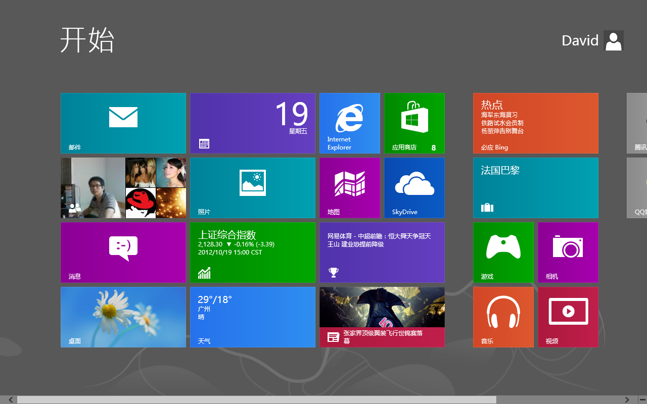 在安裝過程中系統還會自動重啟多次,最后進入界面前還會提示默認進入的系統,可以自行選擇;我們選擇了WIN8,出現WIN8漂亮的界面:
