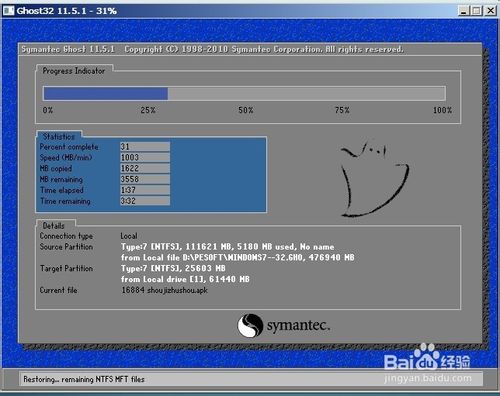 4、然后開始進行安裝,如下圖,稍等一會,等進度條走完,計算機會自動進行重啟