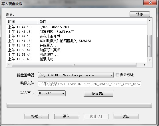 等你看到下邊的畫面后,就可以關閉UltraISO(軟碟通),然后將U盤從電腦中拔下,然后去其他電腦上裝系統了。
