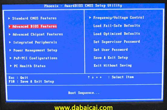 電腦啟動時按“del”或“F8”鍵進入BIOS設置具體設置請參閱 大白菜U盤裝系統設置U盤啟動教程