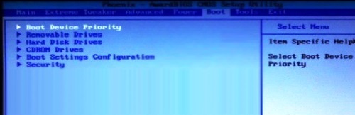 4.設置好后按鍵盤上的ESC鍵退回到上一級設置界面。再按左右方向鍵,選擇“BOOT”主菜單,選擇第一項“Boot Devicepriority”按回車進入: