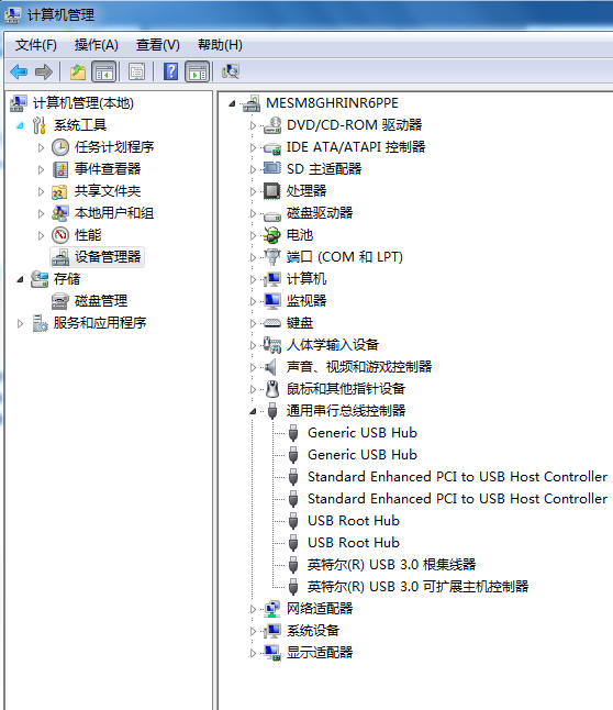 如果USB設備驅動安裝正確,會在這里有正確顯示,安裝不正確會有黃色符號顯示