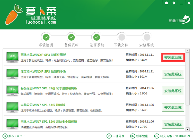 第三步:根據您的使用習慣以及電腦的硬件配置情況選擇一個適合您電腦的系統版本,點擊相應的“安裝此系統”按鈕。