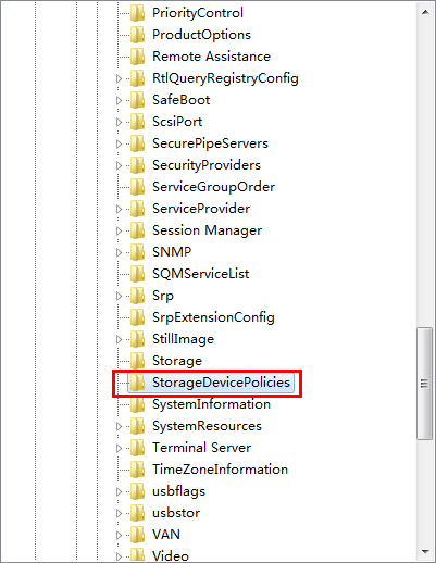 1.首先點擊開始—運行,依次打開“HKEY_LOCAL_MACHINE\SYSTEM\Current ControlSet\Control”下尋找StorageDevicePolicies,若無此項,則新建項,項的名稱就為“StorageDevicePolicies”,如下圖所示: