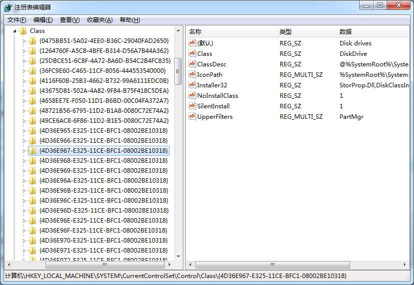 HKEY_LOCAL_MACHINE\SYSTEM\CurrentControlSet\Control\Class\{4D36E967-E325-11CE-BFC1-08002BE10318}。