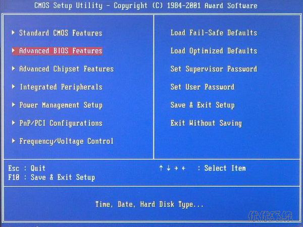 3、然后按“Enter”回車鍵,即進入“Advanced BIOS Features”項設置。