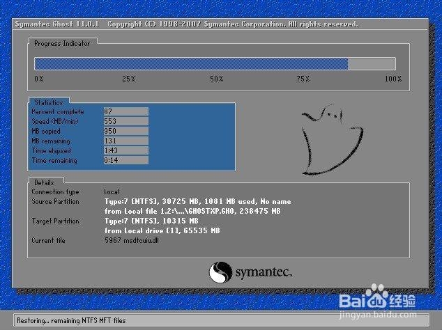當我們操作完以后,就可以基本不用管了,因為只要用教程中所說的系統或者Ghost硬盤安裝器就可以全自動完成所有安裝步驟。那么我們現在為方便大家可以把安裝截圖給大家看一下!