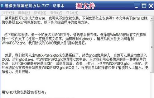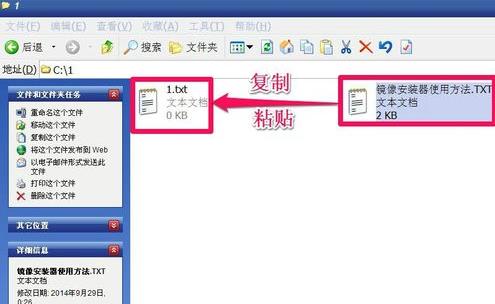 8,用鍵盤上的Ctrl + V 鍵,將源文件“鏡像安裝器使用方法.TXT”內容粘貼到這個“1.txt”文件中。