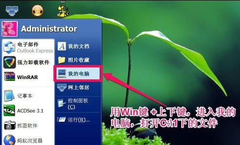 2,進入桌面后,用Win鍵打開“開始”菜單,然后用上下左右鍵選擇“我的電腦”。然后按Enter鍵。