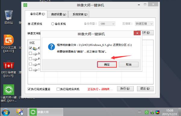 8、選擇拷貝好在U盤里面的系統,然后在選擇將系統安裝都C盤后點確定;