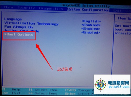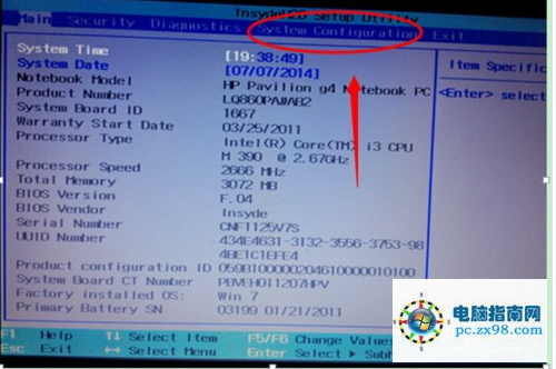 等待片刻之后,進入bios界面找到“system configuration”系統設置選項