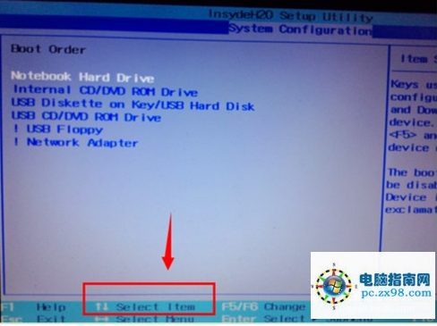 進入系統啟動設備選項設置,排在前面的就是首選啟動設備了,如果要調整可以通過下面提示箭頭調整。