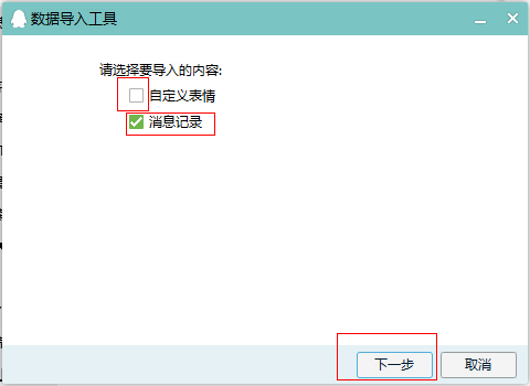 4.接著選擇需要導入的內容,隨便說下這里也可以導入保存在本地自定義表情,接著點擊下一步
