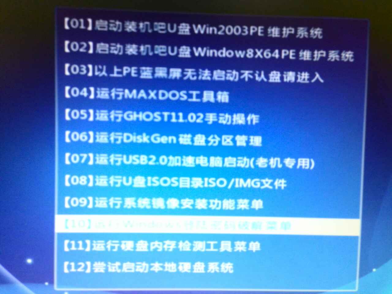 第三步、電腦自動重啟后進入功能選擇“運行windows登陸密碼破解菜單”,回車進入該選項;