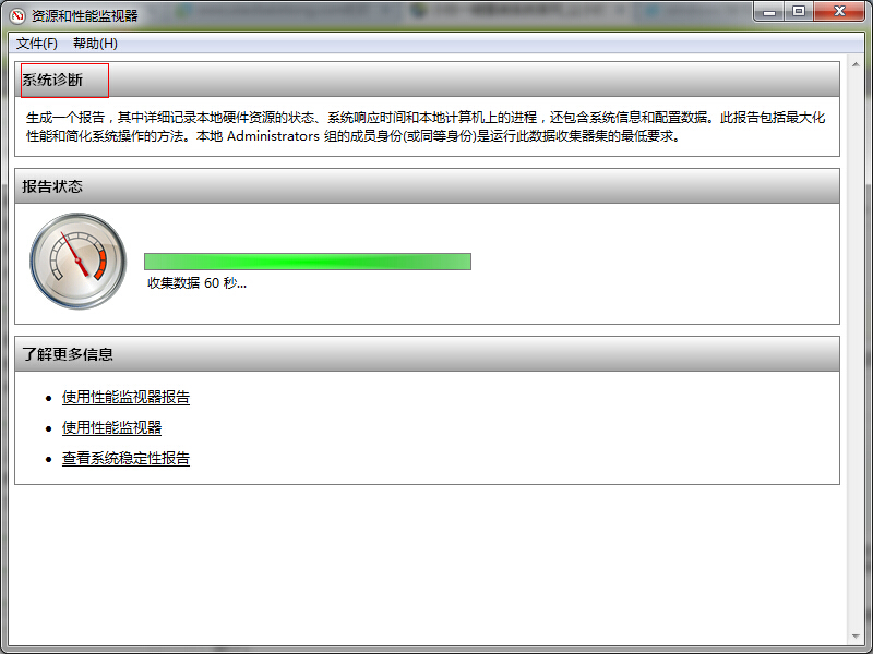 大約需要60秒的收集信息和分析時間,系統診斷