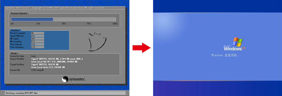 第五步、電腦進去系統安裝還原界面,等待即可;一段時間過后系統再次重啟則進入系統歡迎界面,系統重裝大告功成!