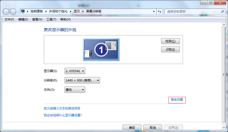 2.在“屏幕分辨率”界面里找到并雙擊打開“高級設置”