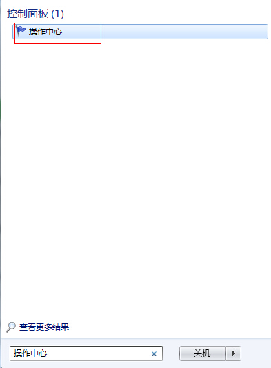 1.首先在開始菜單搜索里輸入“操作中心”,然后雙擊打開