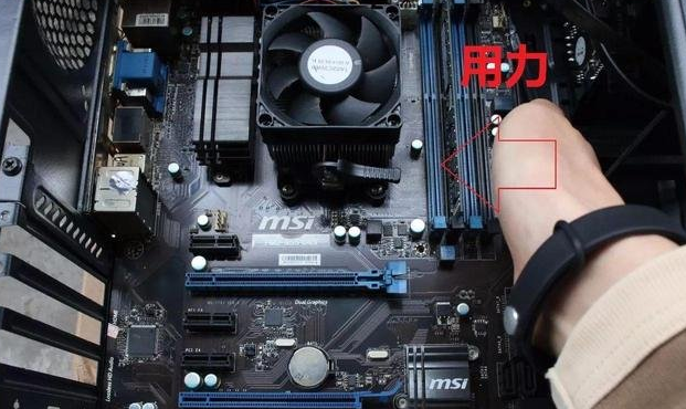 6、但是有時候怎么用力可能只聽到一聲卡塔,并不是內存插不進去,只是卡扣沒有與內存的卡口發出聲音或者太緊了而已。