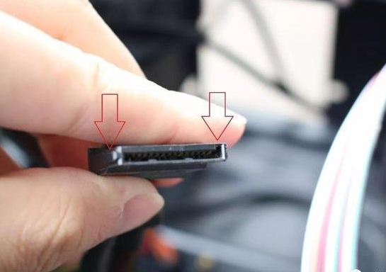 2)SATA供電線方向一般有兩個辨認方法,一個是第一個箭頭的折角,一個是第二個箭頭的空口。