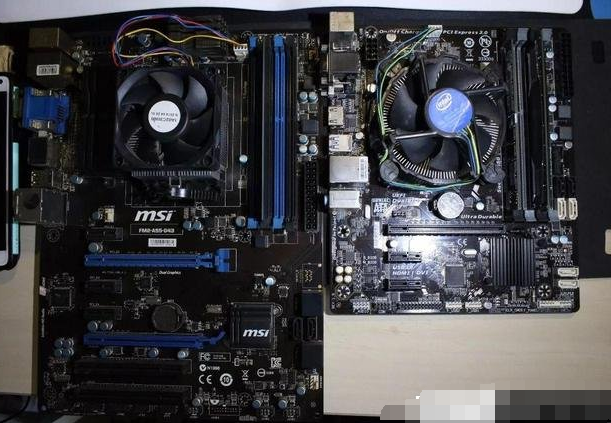 2、把主板放置于水平界面,CPU放置于不導電的區域。
