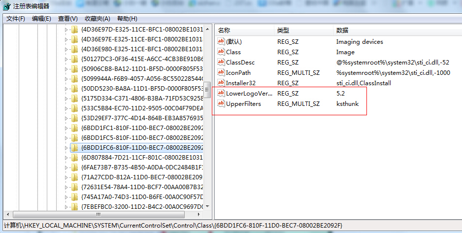 2.在“注冊表編輯器”窗口中,依次找到HKEY_LOCAL_MACHINE\SYSTEM\CurrentControlSet\Control\Class\{6BDD1FC6-810F-11D0-BEC7-08002BE2092F} 子項。