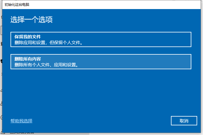 如果選擇的是刪除個人文件,則相當于系統盤和其它盤都會格式化,選擇這項,其它盤的東西就會丟失。