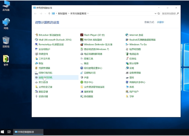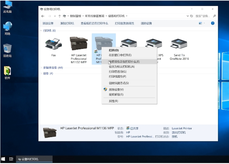 2、在查看方式小圖標模式下點擊設備和打印機,在脫機的打印機上鼠標右鍵單擊選擇查看正在打印什么