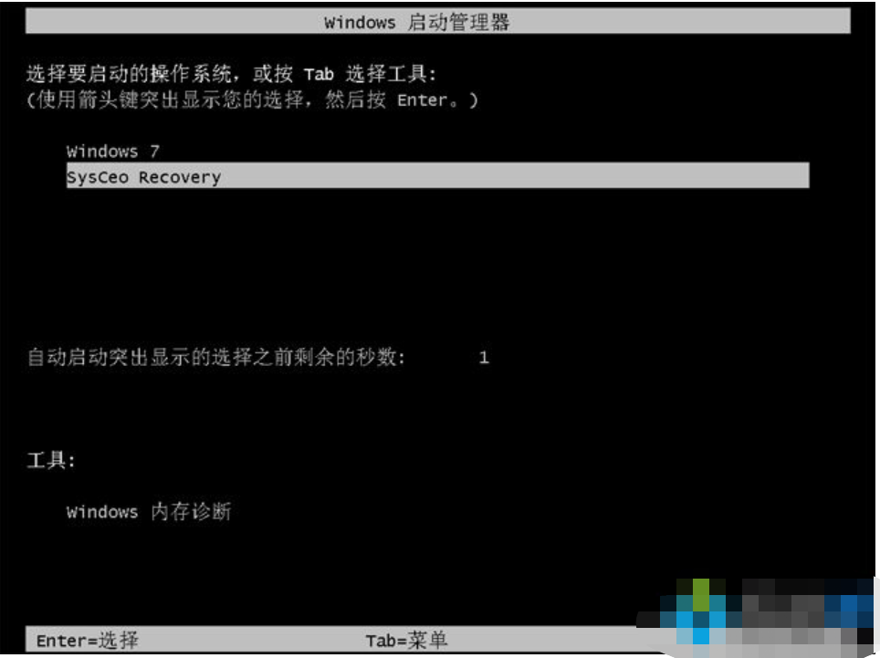 6、這時候電腦會重啟,進入到這個界面,默認選擇SysCeo Recovery項啟動;