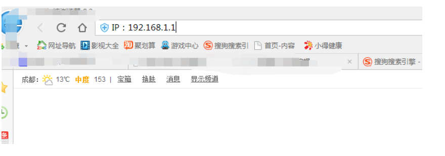 2、在瀏覽器上面的網址輸入處輸入剛剛查看到的IP:192.168.1.1