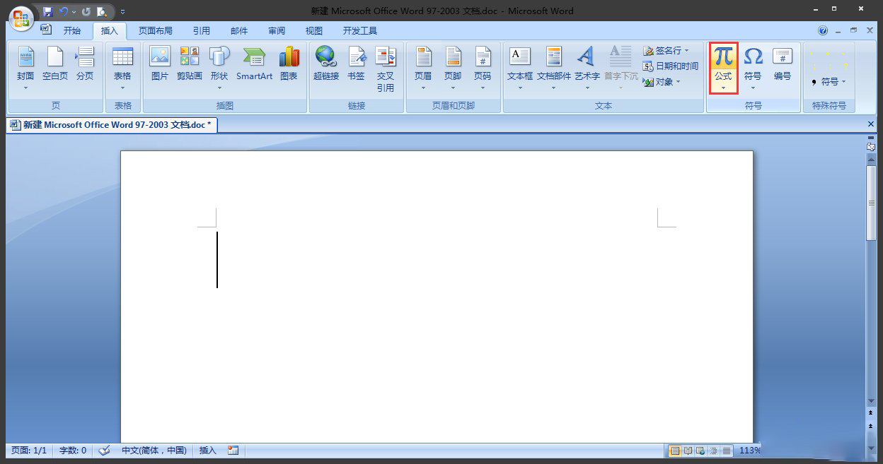 2、在功能區找到”公式“,如圖黃色加亮的部分,在一個大大的符號圓周符號“π”下面。