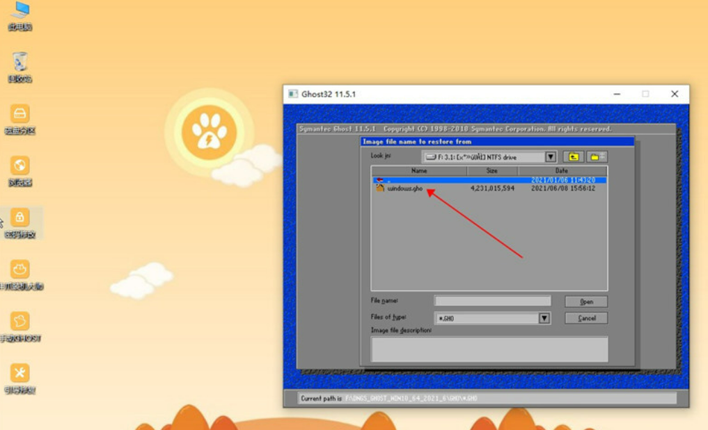 9、選擇gho文件所在位置,小編是在U盤的GHO目錄下,點擊gho文件,比如win7.gho;