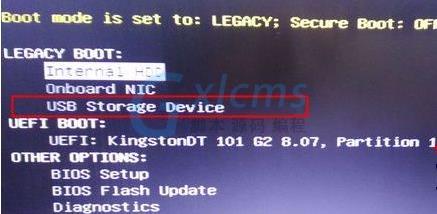 6、重啟過程中按F12,就能進入開機啟動項選擇頁面,選擇USB storage device回車,即可進入U盤啟動盤?! ?/p>