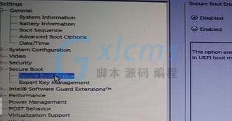 2、展開Secure Boot子目錄,點擊Secure Boot Enable選擇Ddisabled?! ?/p>