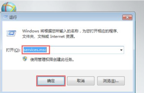 1.首先我們按win+r打開運行窗口,輸入命令”services.msc“點擊”確定“。