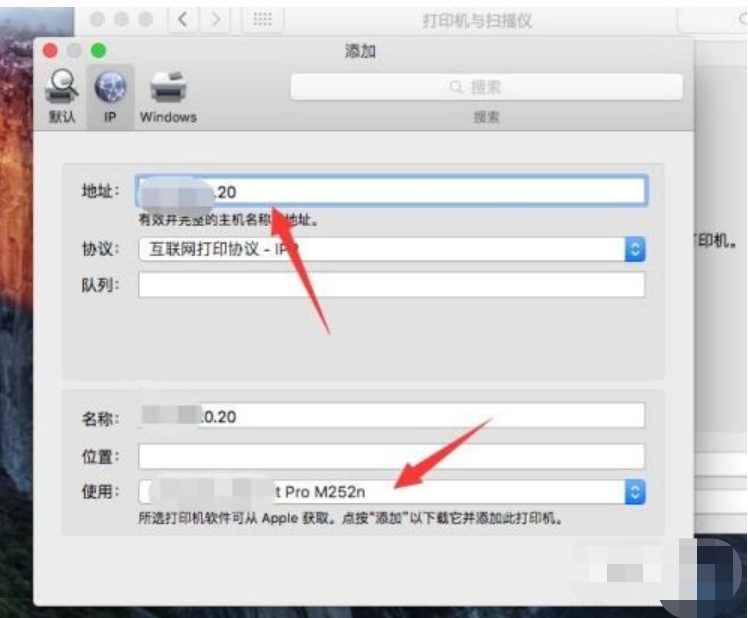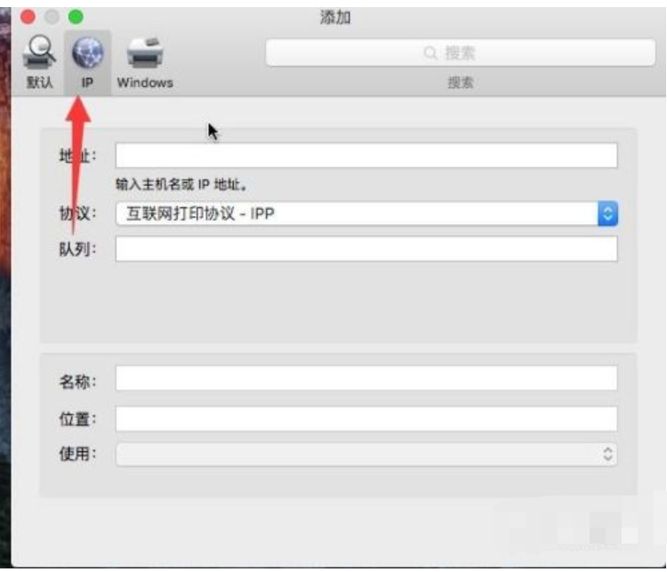 4、點擊【IP】可以通過IP地址的方式添加無線打印機。