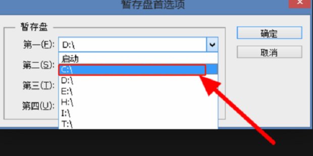 4、只需59元下載PS長久激活使用 | 遠程安裝ps查看詳情>>廣告4然后在彈出來的窗口中點擊打開“第一”后面的倒三角,選擇內存最大的磁盤,回車確定,