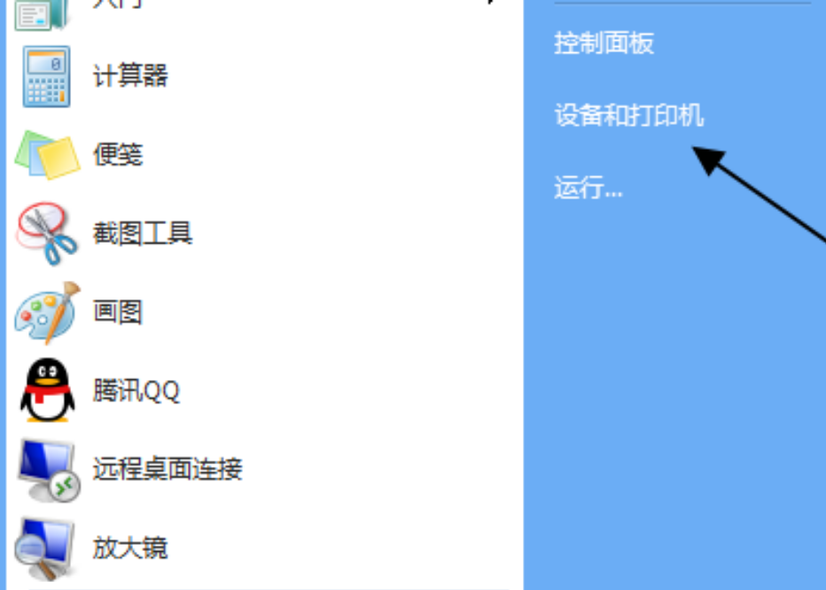 1、首先打開桌面左下角的開始圖標按鈕,在彈出來的界面中,選擇打開“設備和打印機”選項。