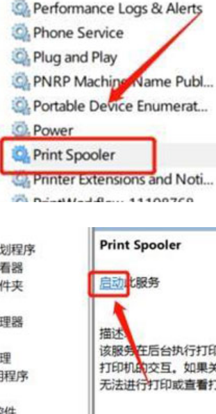 3、在服務列表中,找到“Print Spooler”服務項,然后點擊左上角的“啟動”選項;