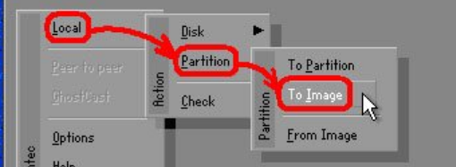2、依次單擊“Local”→“Partition”→“To Image”(意為:本地→分區→到鏡像文件)
