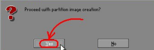 8、出現確認建立鏡像文件窗口,單擊“Yes”開始備份(未單擊“Yes”前若發覺上述某步驟有誤請單擊“No”取消,然后重來)。
