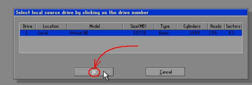 3、出現選擇本地硬盤窗口,單擊要備份的分區所在硬盤,再單擊“OK”。